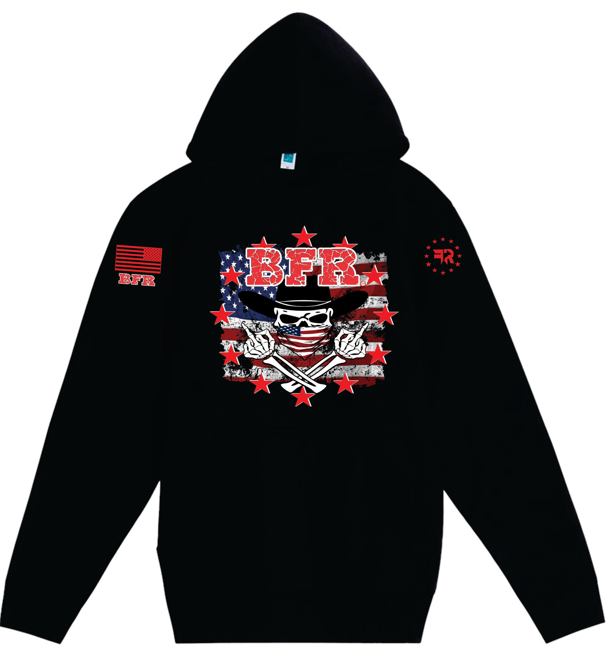 Introducing the BFR Black Hoodie- perfect for showing off your style and love for the BFR community! With its comfortable loose fit- this classic Hoodie is perfect for cool fall days to the cold winter ones! The Pull over style makes it a perfect staple for everyday wear. Get your hands on the latest design featuring the new BFR logo and join the fun!